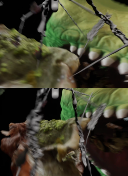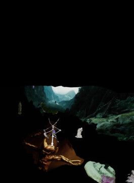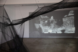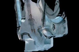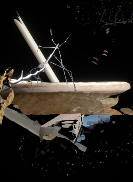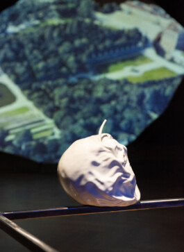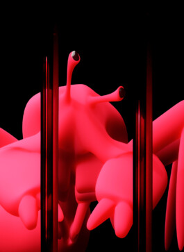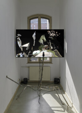 She duplicates the real items in their digital reflection, so that their delimitations seem to dissolve. The result is a seemingly never-ending tracking shot across surface structures merging into each other. Digital objects loom on the horizon of the video with hypnotic constancy; their fragile surfaces seem to be generated pixel by pixel.The objects in the rendered sequence glide out of the depth of the unformulated background of the image. If the viewer visualizes the continuation of this movement into real space, the digital objects would become real and create an image space in which even the viewer becomes part of the construction.