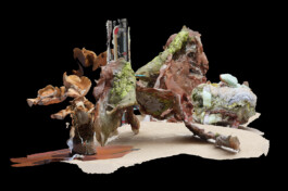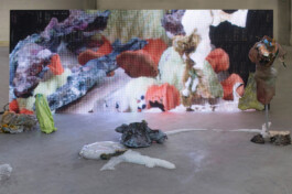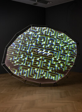 Wagehe Raufi’s artistic investigation is a closer examination of the interface between material presence and digital fragility. Her installations dissolve the boundaries between analog and digital space by allowing real objects to encounter their logarithmic depiction and assembling them into artificial landscapes. With her sculptures and video works she attempts to expand digital space and to incorporate it into our immediate present.